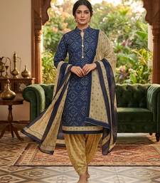Blue printed cotton blend stitched geometric print salwar kurta dupatta for women