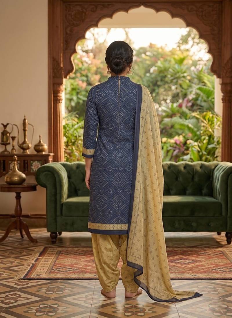 | Product Name | Blue Printed Cotton Blend Stitched Geometric Print Salwar Kurta Dupatta For Women | |