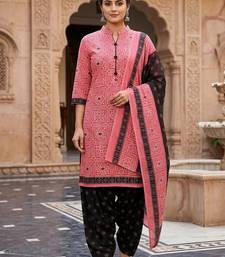 Pink printed cotton blend stitched geometric print salwar kurta dupatta for women