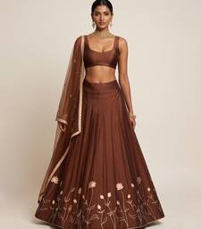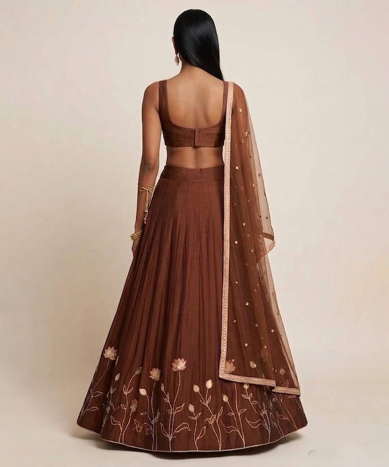 Brown embroidered silk lehenga set
