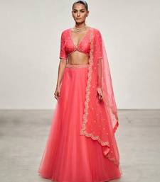 | Product Name | Coral Pink Embroidered Organza Lehenga Set | |