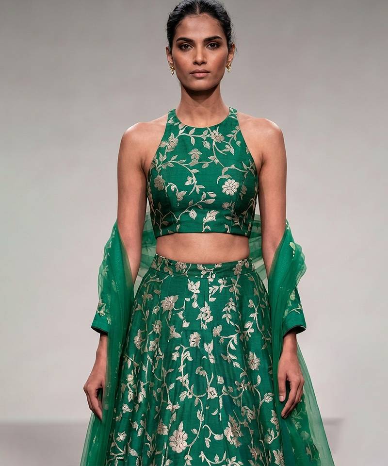 | Product Description | This Emerald Green Silk Lehenga Set Showcases Intricate Embroidery That Enhances Its Luxurious Appeal. The Rich Texture And Graceful Silhouette Make It Ideal For Festive Occasions. Pair It With Traditional Jewelry For A Refined And Elegant Ensemble.