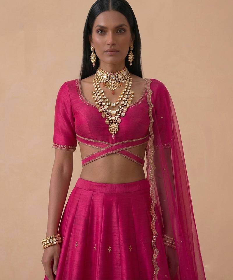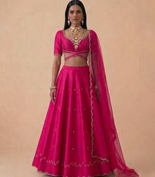| Product Description | This Hot Pink Raw Silk Lehenga Set Features Vibrant Embroidery That Enhances Its Bold And Festive Appeal. The Luxurious Fabric Offers A Rich Texture And Elegant Drape. Perfect For Celebrations, It Pairs Effortlessly With Statement Accessories For A Striking And Contemporary Ethnic Look.