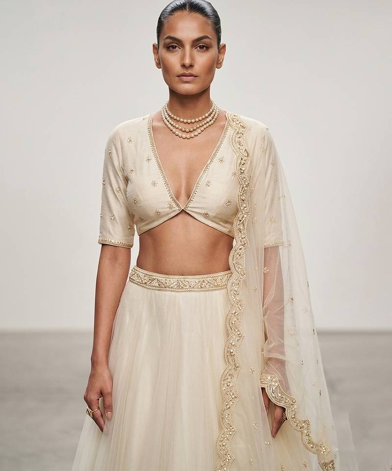 Ivory embroidered organza lehenga set