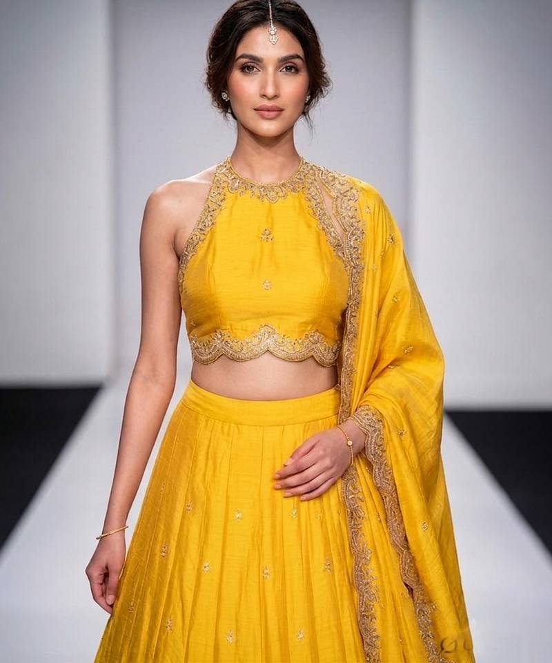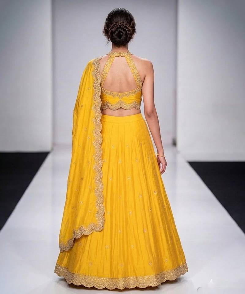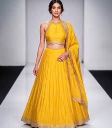 Mustard yellow embroidered silk lehenga set