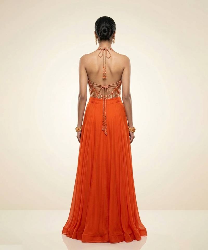 Orange embroidered brocade co ord set