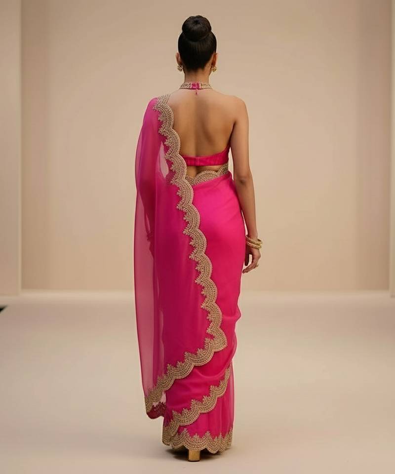 | • | Saree | : | Color- Pink / Fabric- Organza |