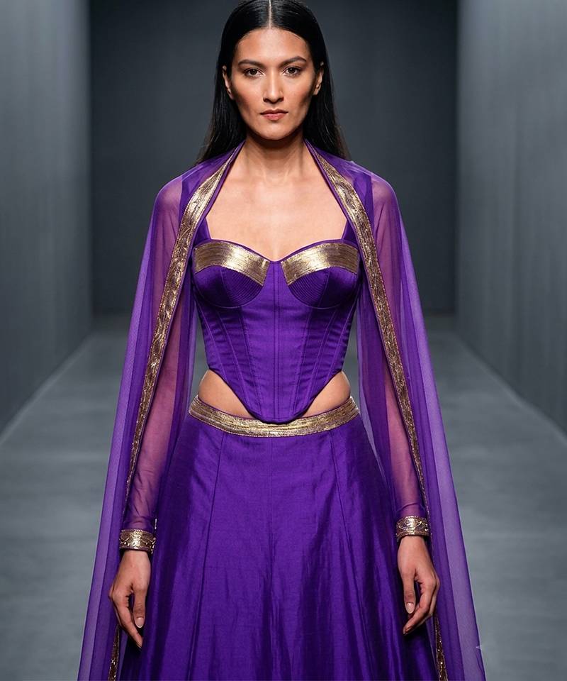 | Product Description | This Purple Silk Lehenga Set With A Corset Top Offers A Stylish And Structured Silhouette. The Luxurious Fabric Enhances Its Elegant Appeal, Making It Perfect For Modern Festive Occasions. Pair It With Statement Jewelry For A Bold And Fashionable Look.
