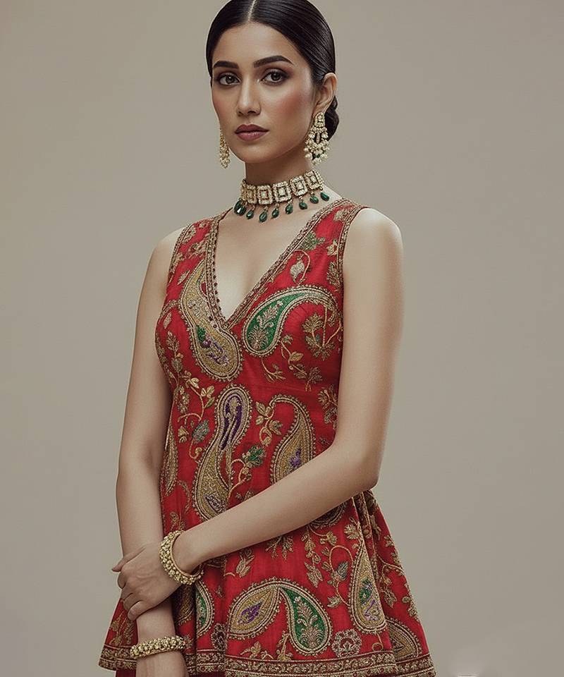 | Product Description | This Red Printed Embroidered Crepe Co Ord Set Showcases A Sleek Silhouette With Elegant Detailing. The Smooth Crepe Fabric Ensures Comfort And A Flattering Fit, While Intricate Embroidery Enhances Its Festive Appeal. Perfect For Celebrations, Parties, And Special Occasions, It Blends Modern Style With Traditional Charm Effortlessly.