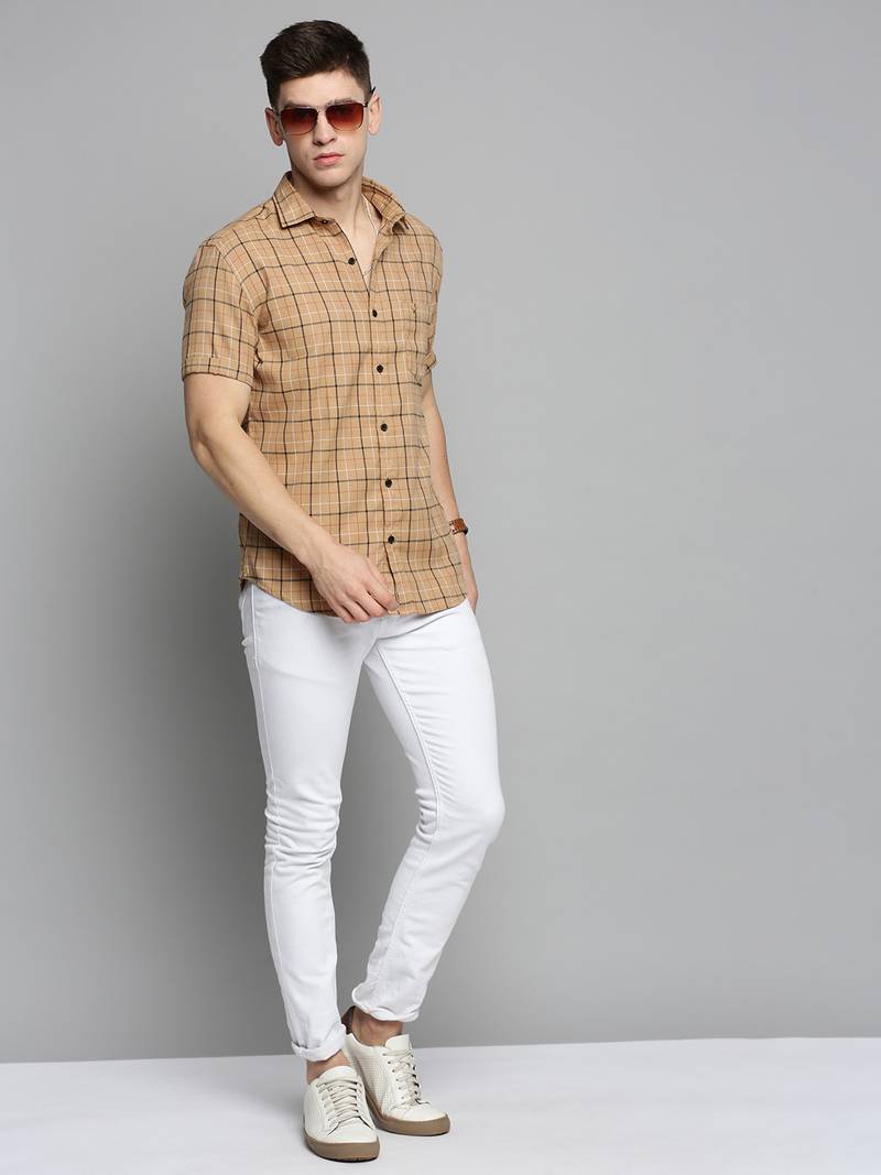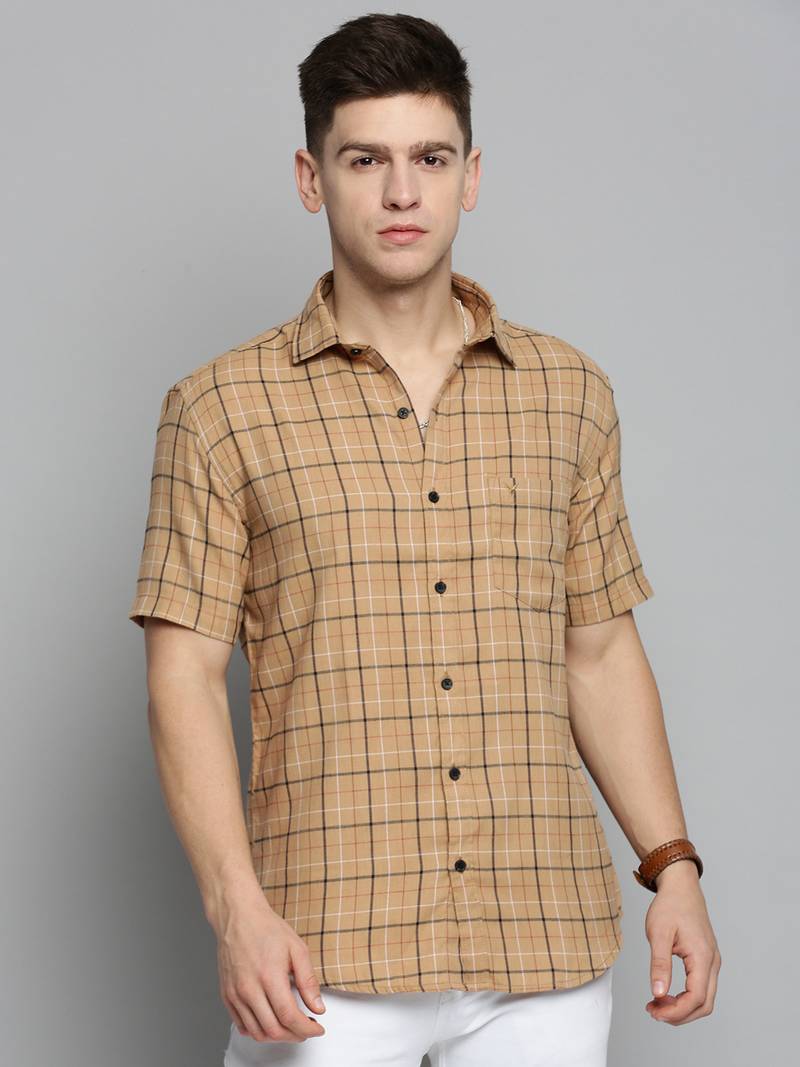 | Product Name | Showoff Men's Short Sleeves Windowpane Checks Khaki Shirt | |