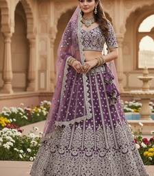 Designer lavender net fabric wedding bridal lehenga choli semi stitched