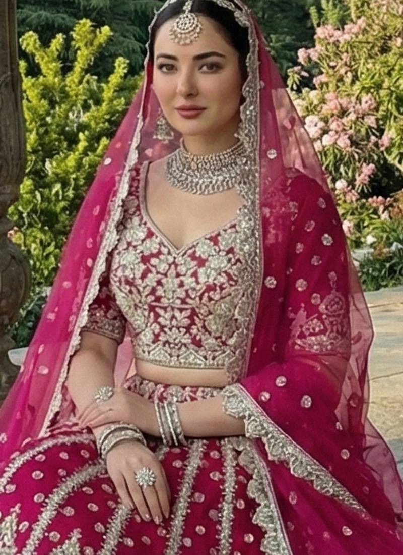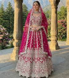 Designer rani pink net fabric wedding bridal lehenga choli semi stitched