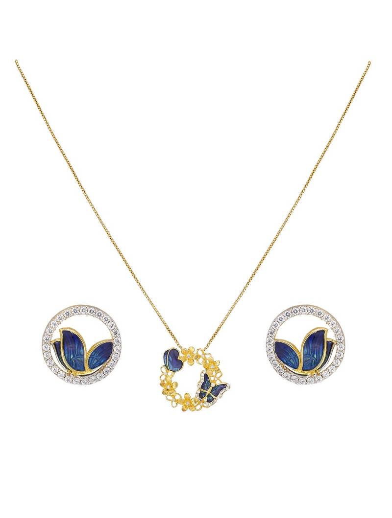 | Product Name | Gold Plated Blue Stone Pendant Necklace Set In Sterling Silver | |