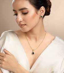 | Product Name | Gold Plated Green Stone Pendant Necklace Set In Sterling Silver | |