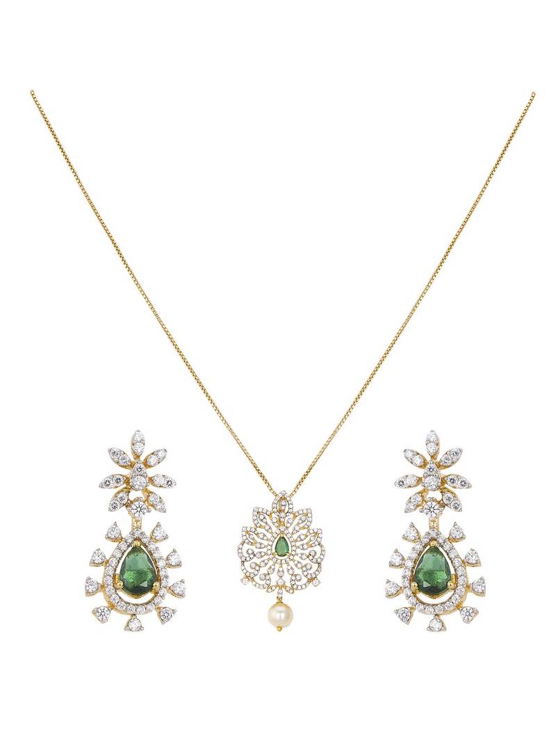 | Product Name | Gold Plated Green Stone Pendant Necklace Set In Sterling Silver | |