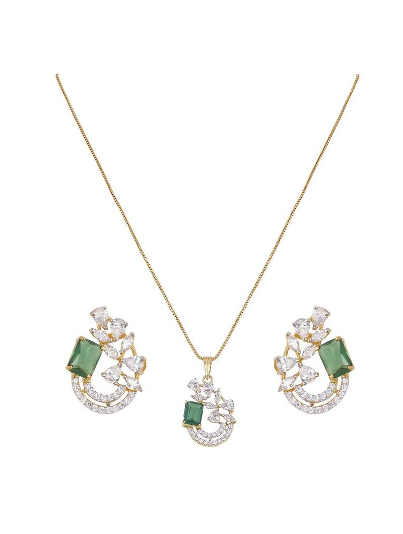 | Product Name | Gold Plated Green Stone Pendant Necklace Set In Sterling Silver | |
