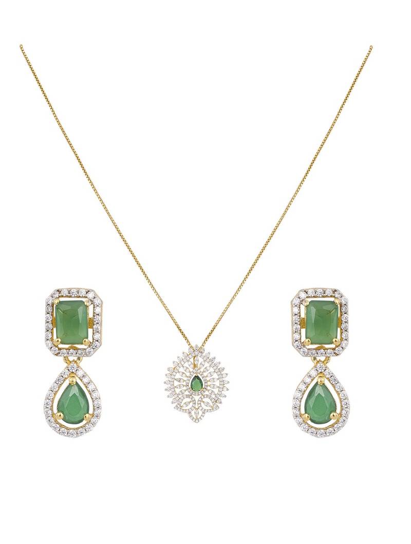 | Product Name | Gold Plated Green Stone Pendant Necklace Set In Sterling Silver | |