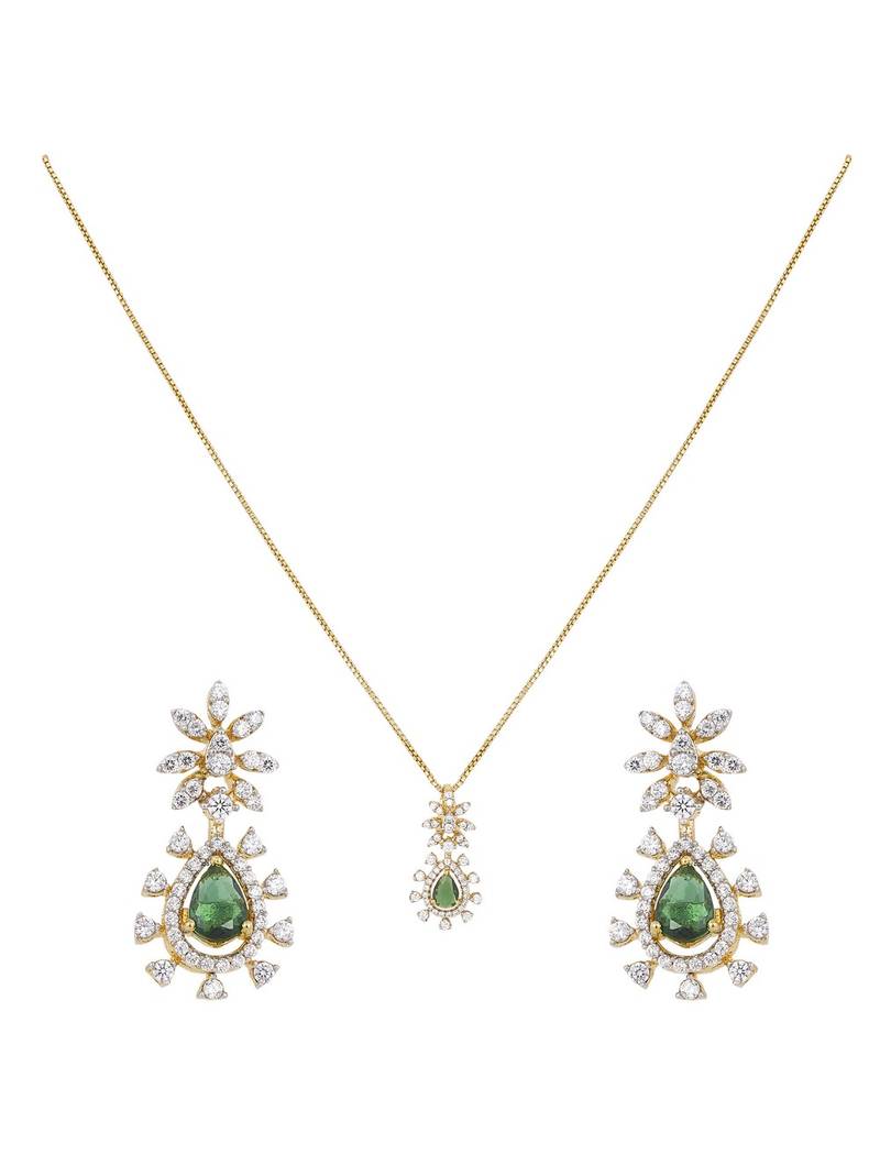 | Product Name | Gold Plated Green Stone Pendant Necklace Set In Sterling Silver | |