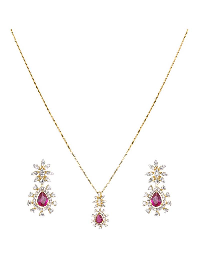 | Product Name | Gold Plated Pink Stone Pendant Necklace Set In Sterling Silver | |
