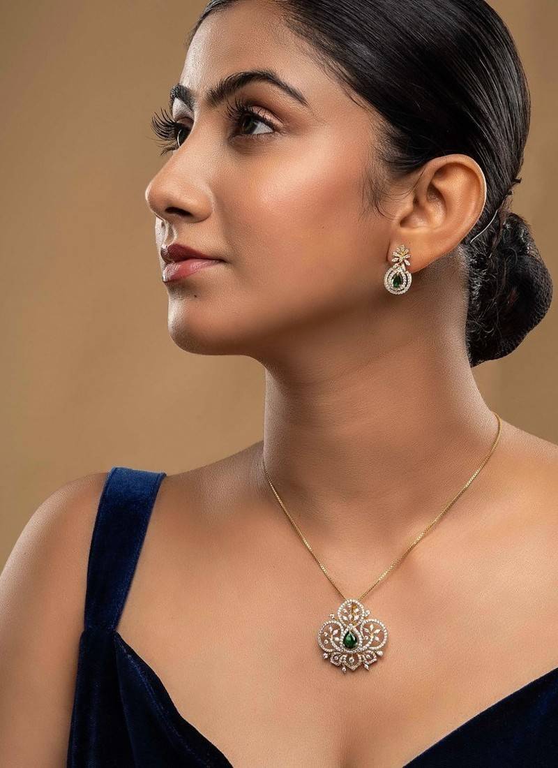 | Product Name | Rose Gold Green Stone Pendant Necklace Set In Sterling Silver | |