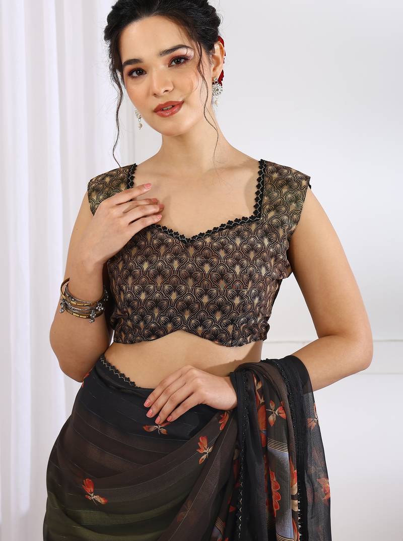 | Product Name | Mirchi Fashion Brown Chiffon Saree With Floral Print & Unstitched Blouse Piece For Women | |