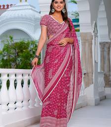 Mirchi fashion pink chiffon saree with leaf block print & unstitched blouse piece for women