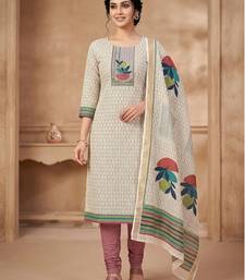 Beige linen shimmer digital printed dress material unstitched