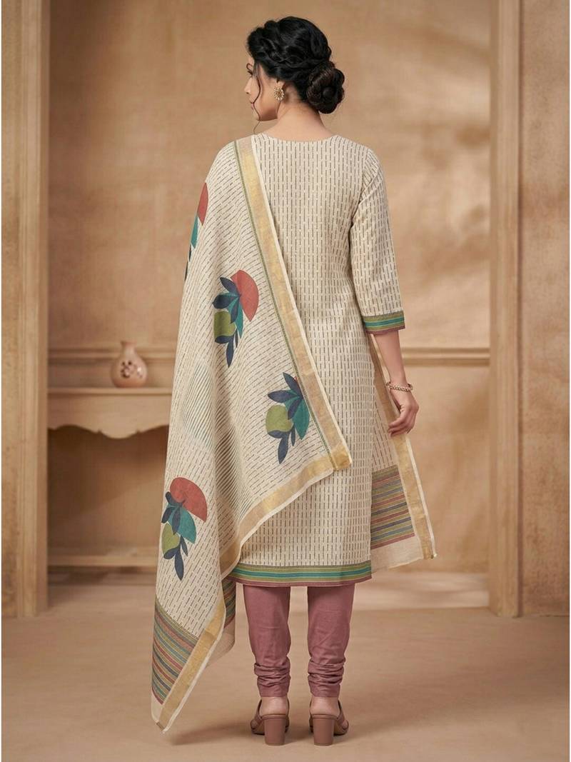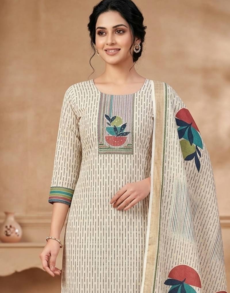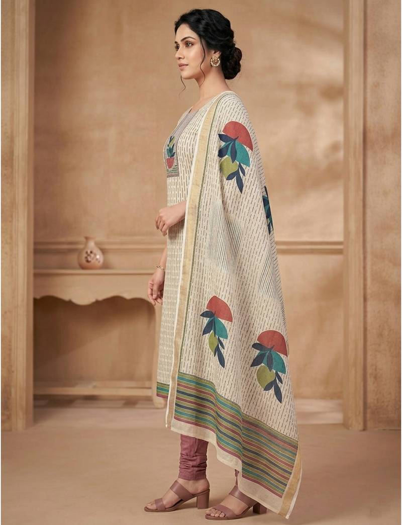 | Product Name | Beige Linen Shimmer Digital Printed Dress Material | |