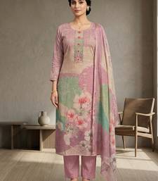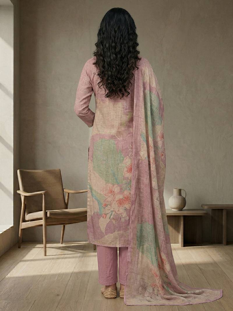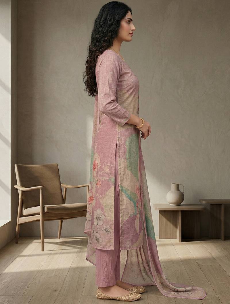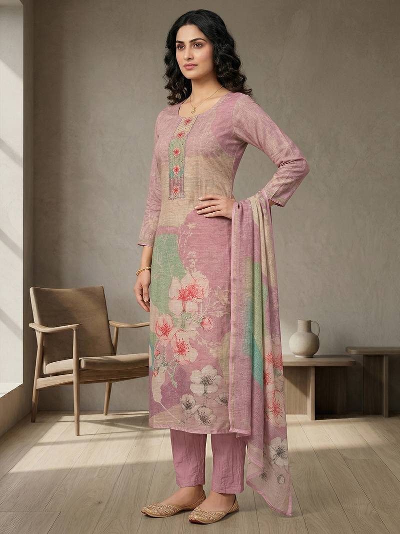 Stylee lifestyle pink linen shimmer digital printed dress material unstitched