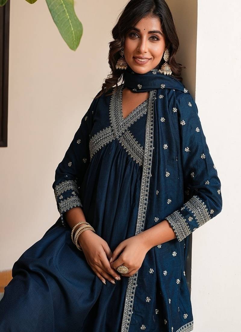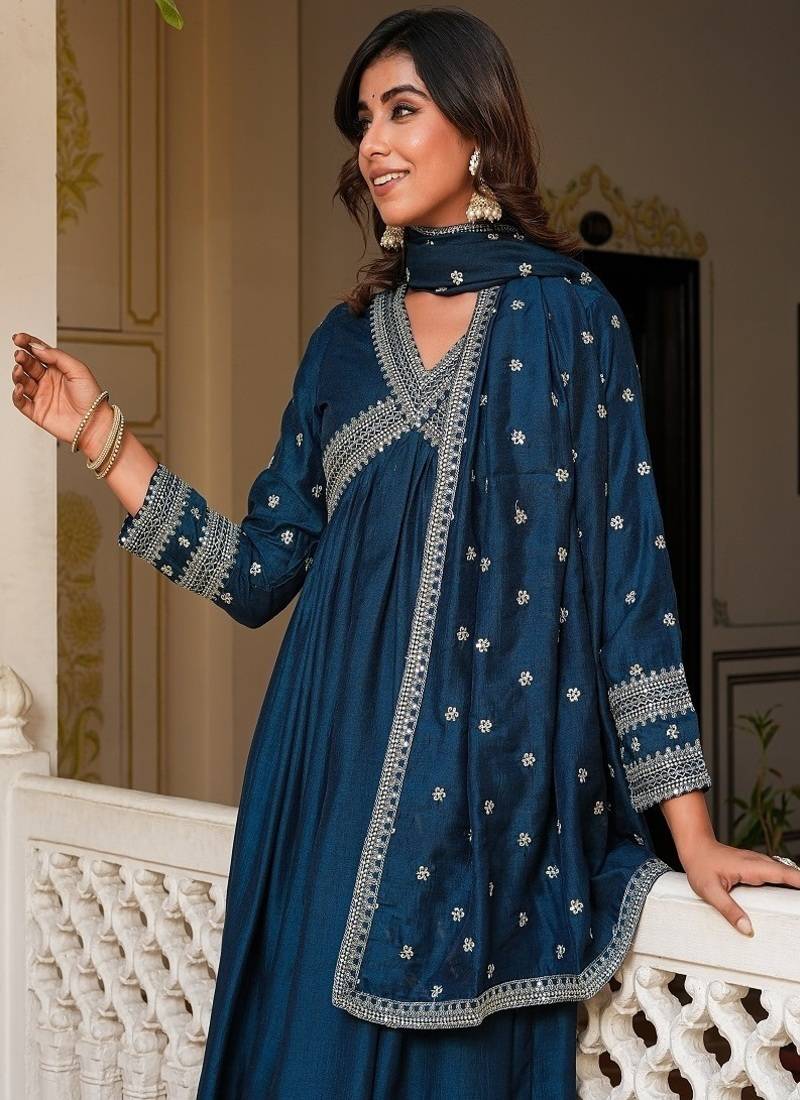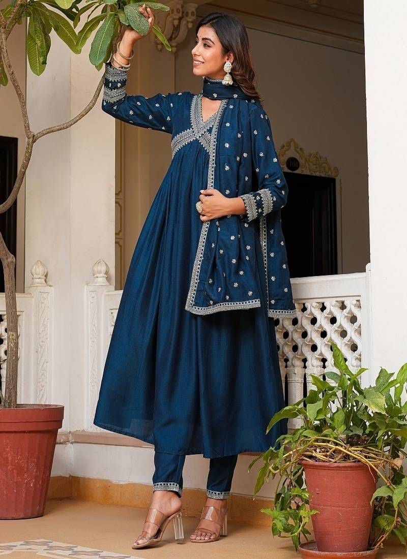 | Product Name | Aliya Cut Flareid Kurta With Seqvence Embroidry Set Of 3 | |