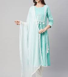 Womens printed embroidered a-line kurta pant dupatta set (sea green)