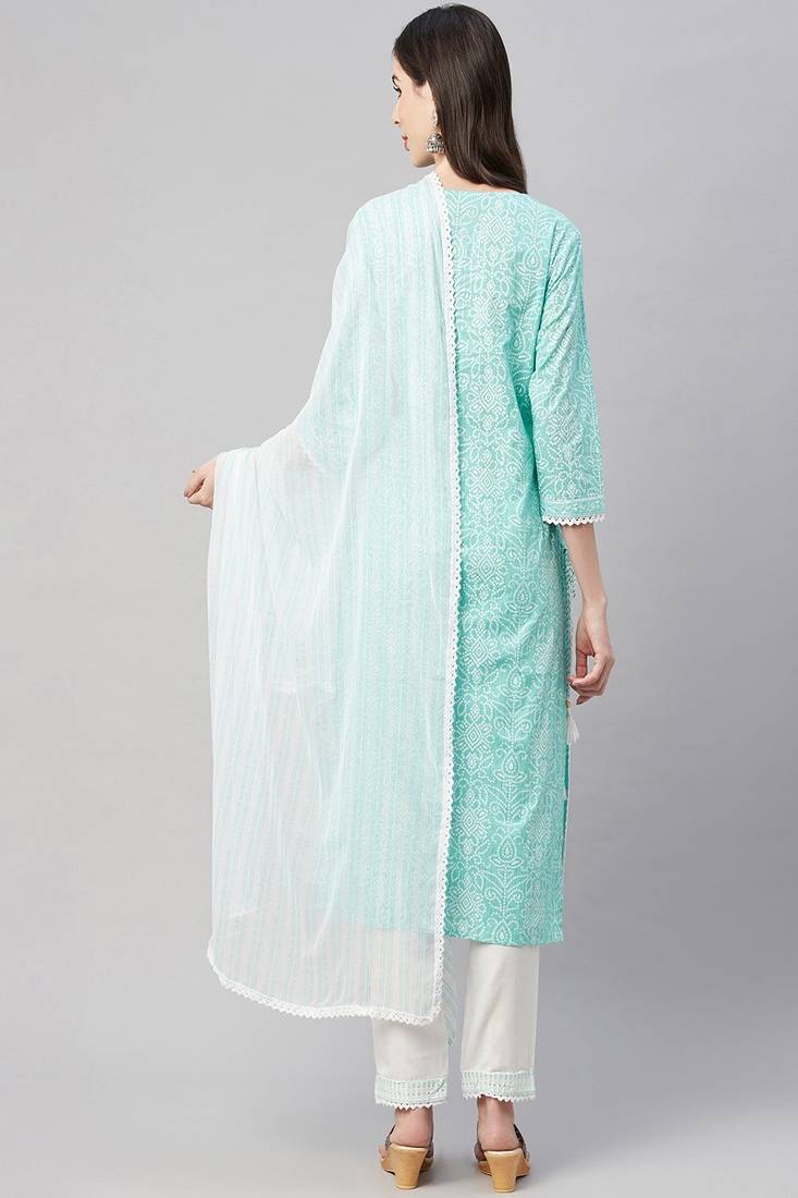 | Product Name | Womens Printed Embroidered A Line Kurta Pant Dupatta Set (Sea Green) | |