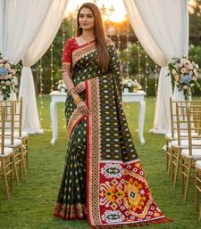 Dark green color banarasi zari and meenakari ikkat design work silk saree
