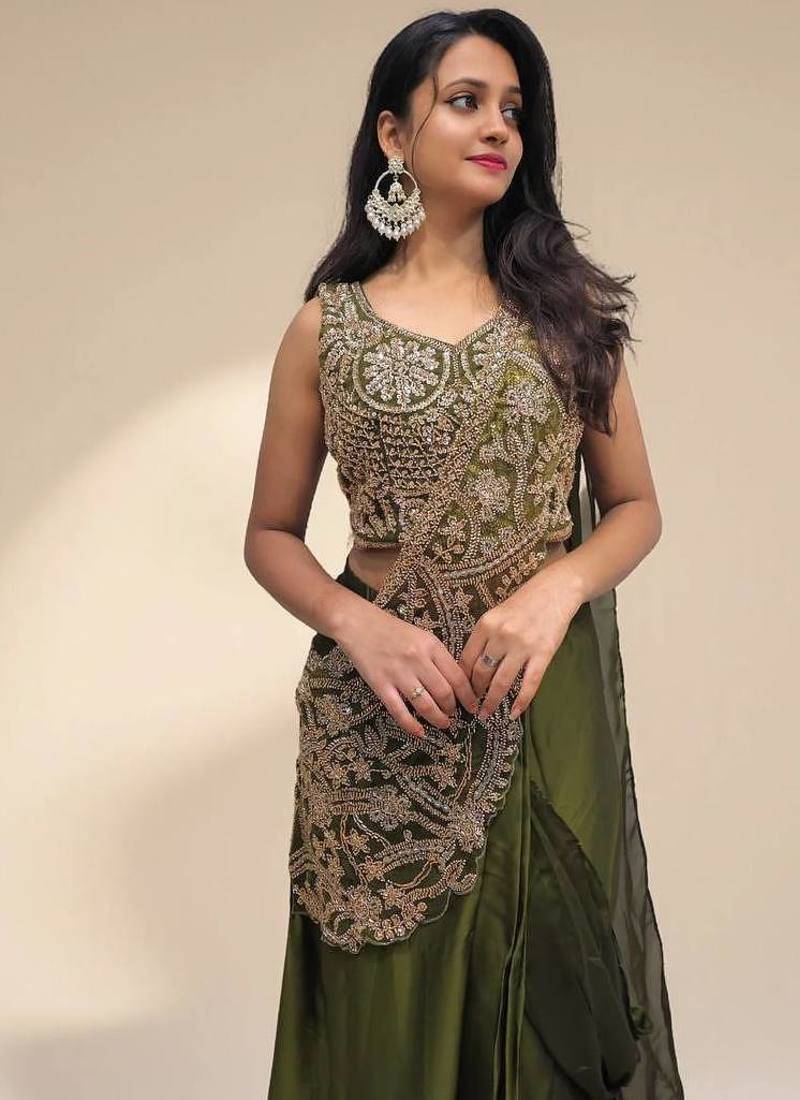 | Product Name | Mahendi Color Embroidery Thread & Semi Beads Work Ready To Wear Silk Saree | |
