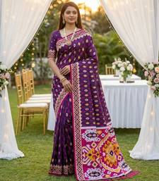 Purple color banarasi zari and meenakari ikkat design work silk saree