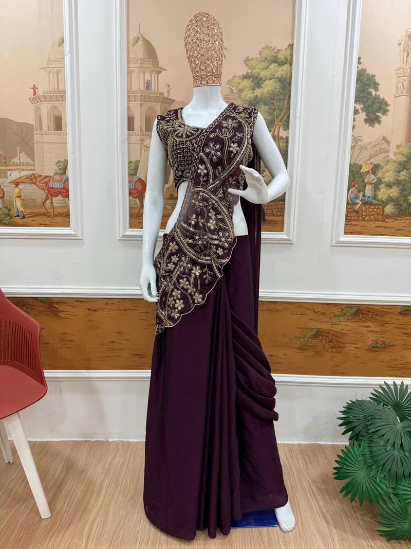 | Product Name | Wine Color Embroidery Thread & Semi Beads Work Ready To Wear Silk Saree | |