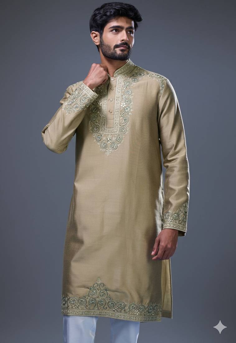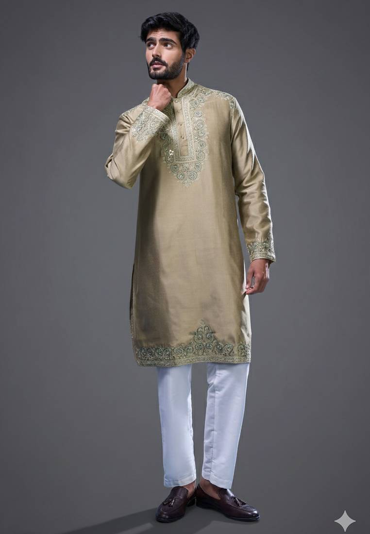 | Product Name | Beige Embroidered, Mirror Silk Kurta Pant | |