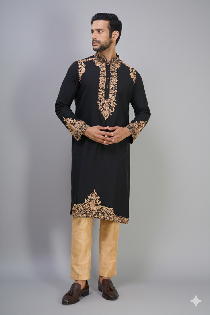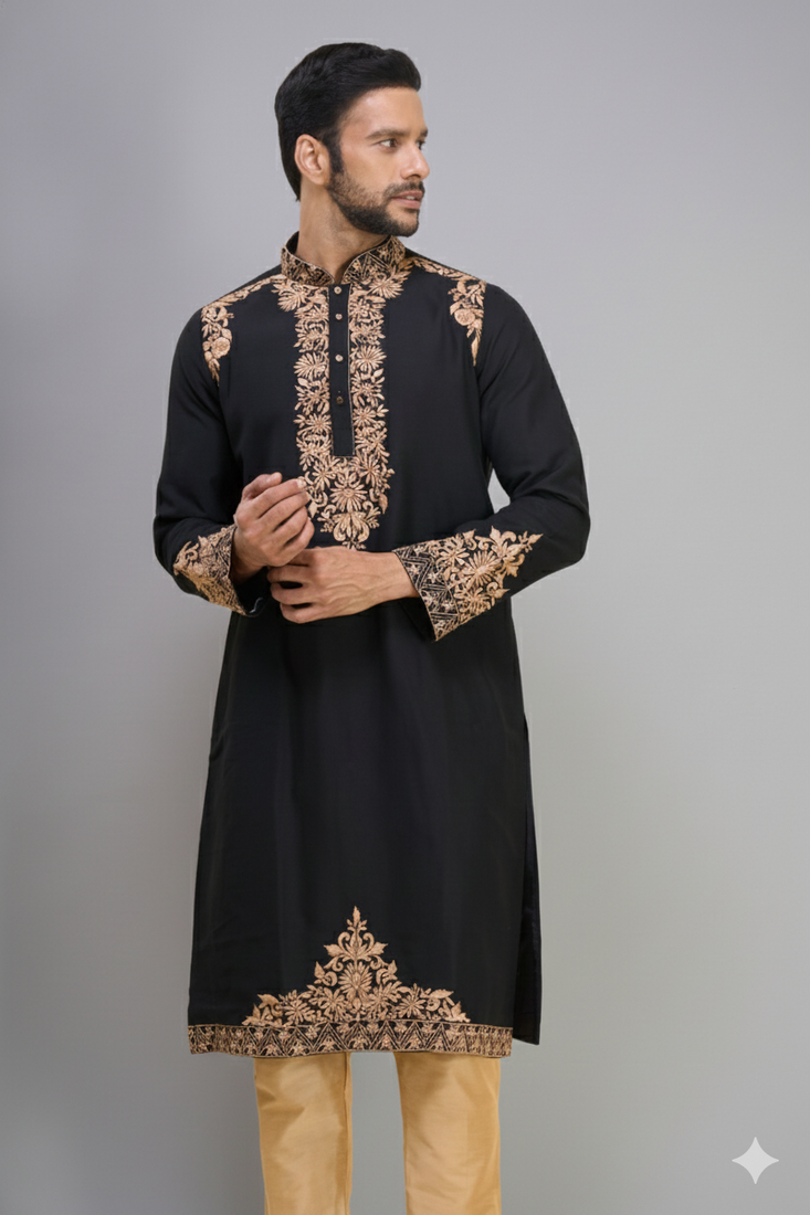| Product Name | Black Ethnic Embroidered Silk Kurta Pant Set For Men | |
