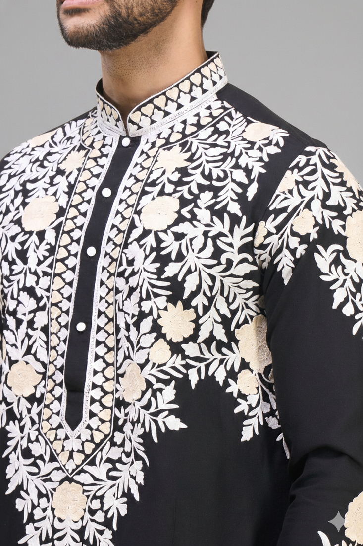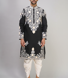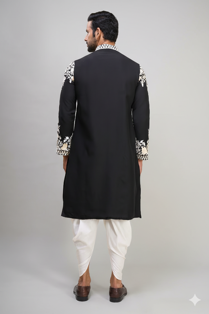 Black embroidered men’s silk kurta patiala set