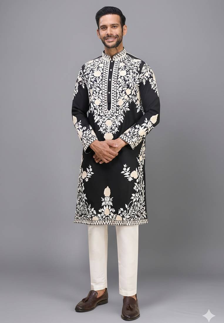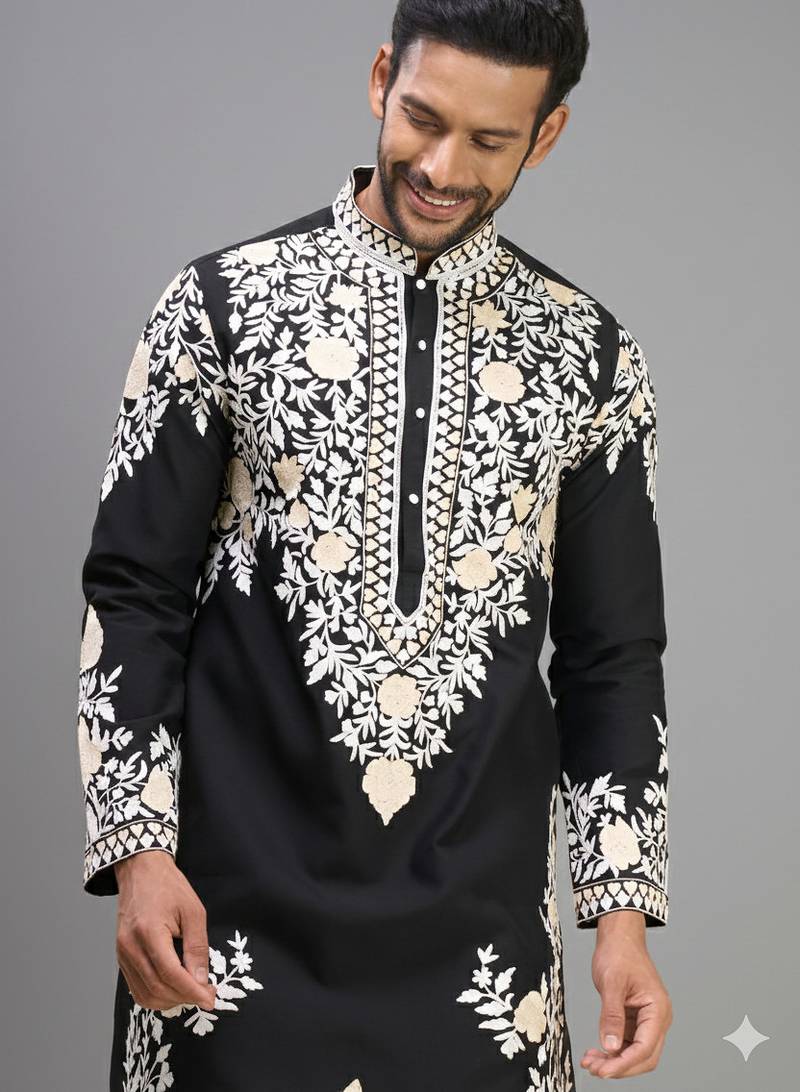 | Product Name | Black Silk Kurta Pant Set With Embroidered Work | |