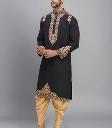 | Product Name | Black Embroidery Work Silk Men’s Kurta Patiala Set | |