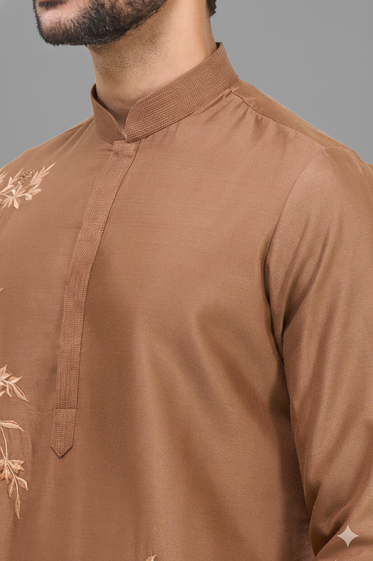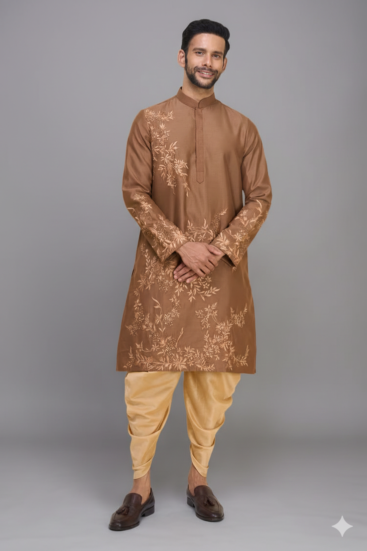 | Product Name | Men’s Brown Embroidered Silk Kurta Patiala Set | |