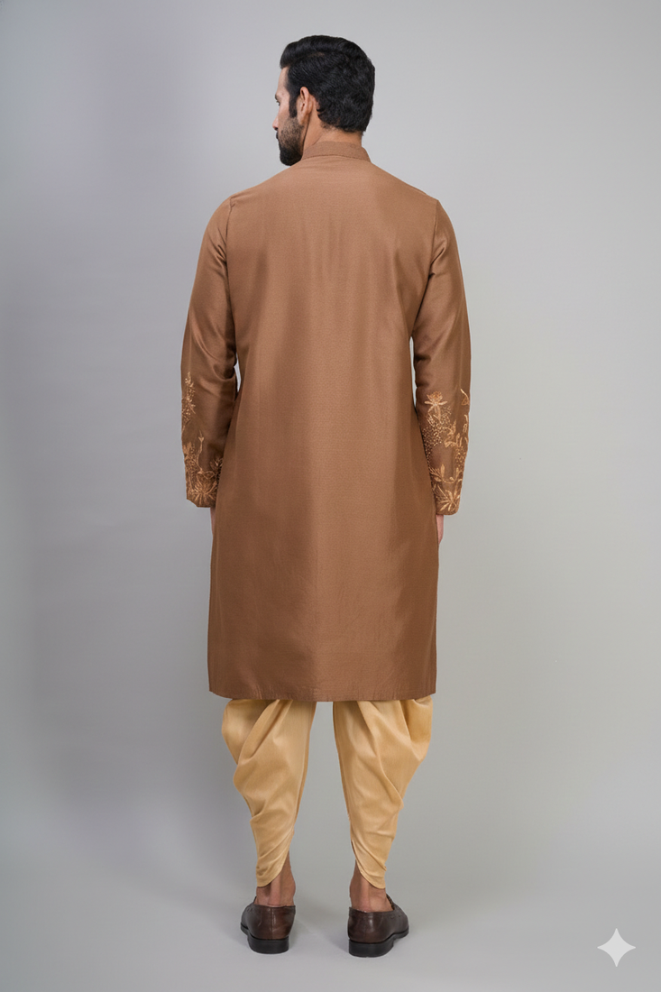 Men’s brown embroidered silk kurta patiala set