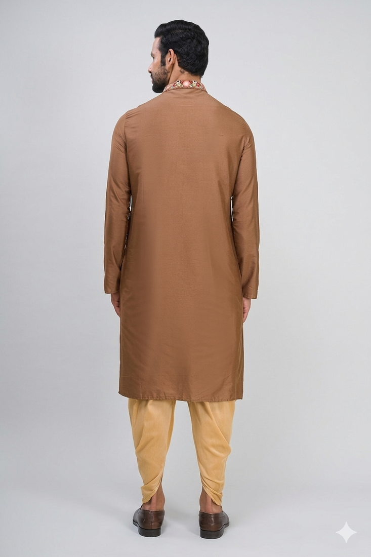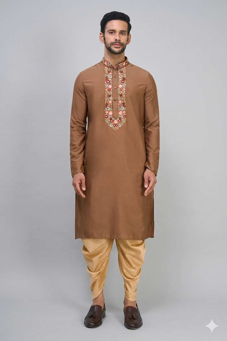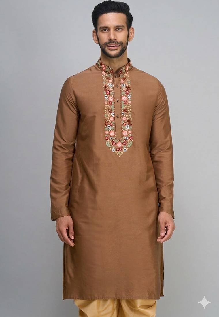 | Product Name | Brown Embroidered Men’s Silk Kurta Patiala Set | |