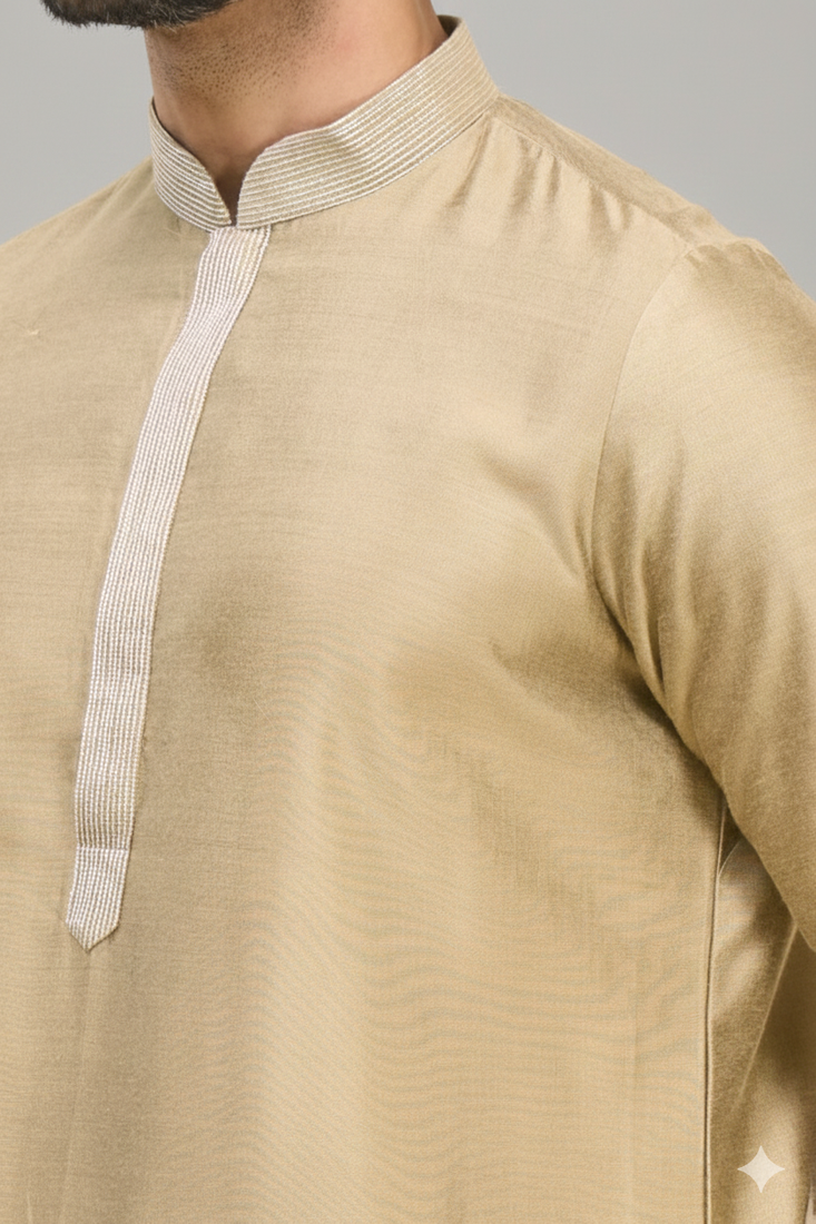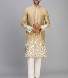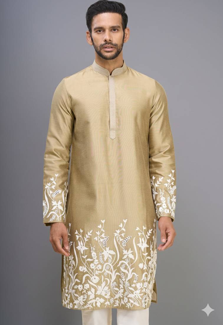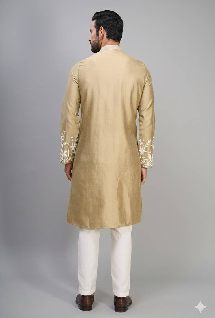 | Product Name | Men’s Chiku Silk Kurta Pant Set With Floral Embroidery | |