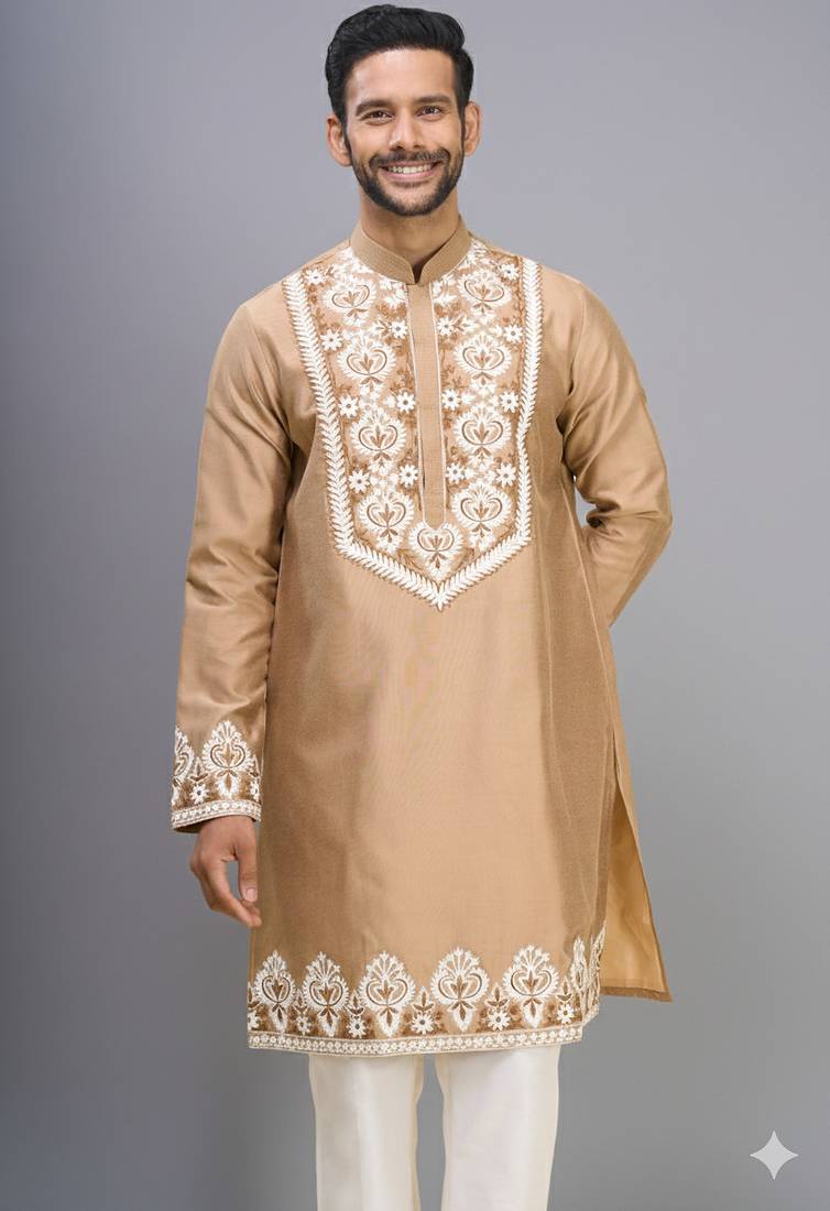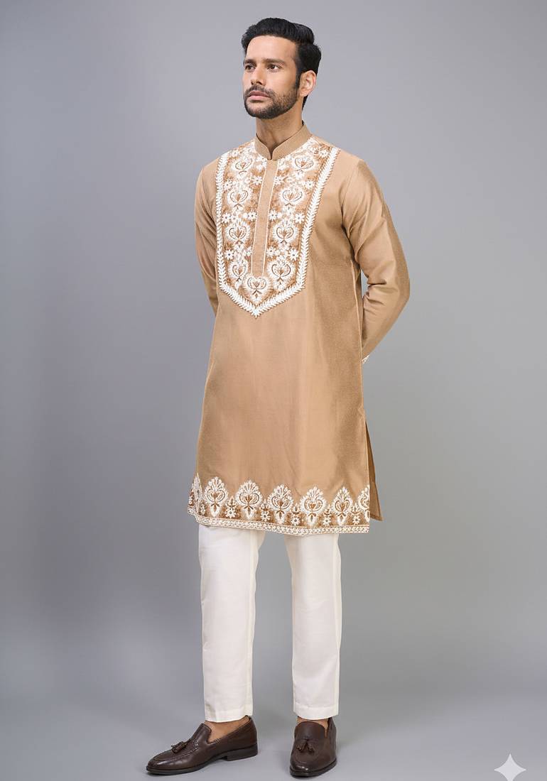 | Product Name | Chiku Embroidered Silk Men’s Kurta Pant Set | |