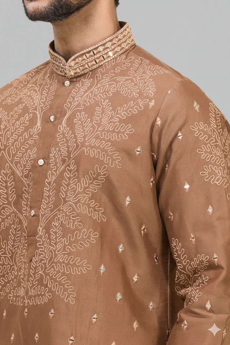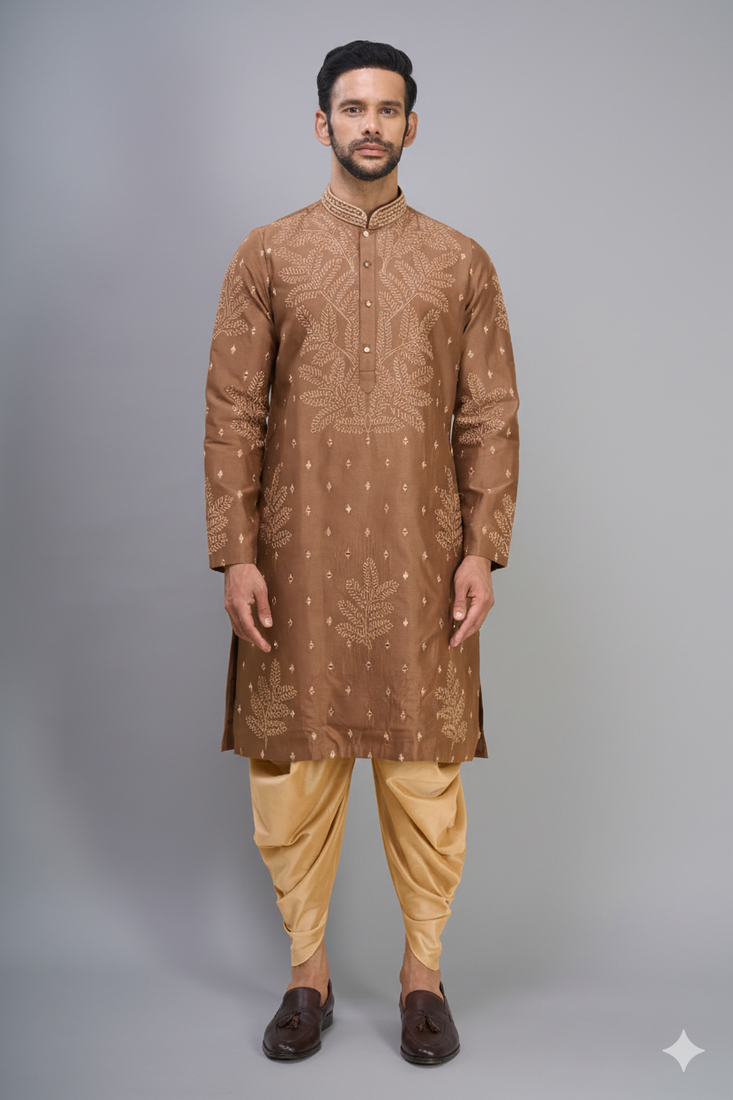 | Product Name | Chiku Embroidered Silk Men’s Kurta Patiala Set | |