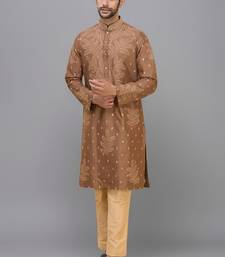 Coffee silk kurta pant set with embroidered design