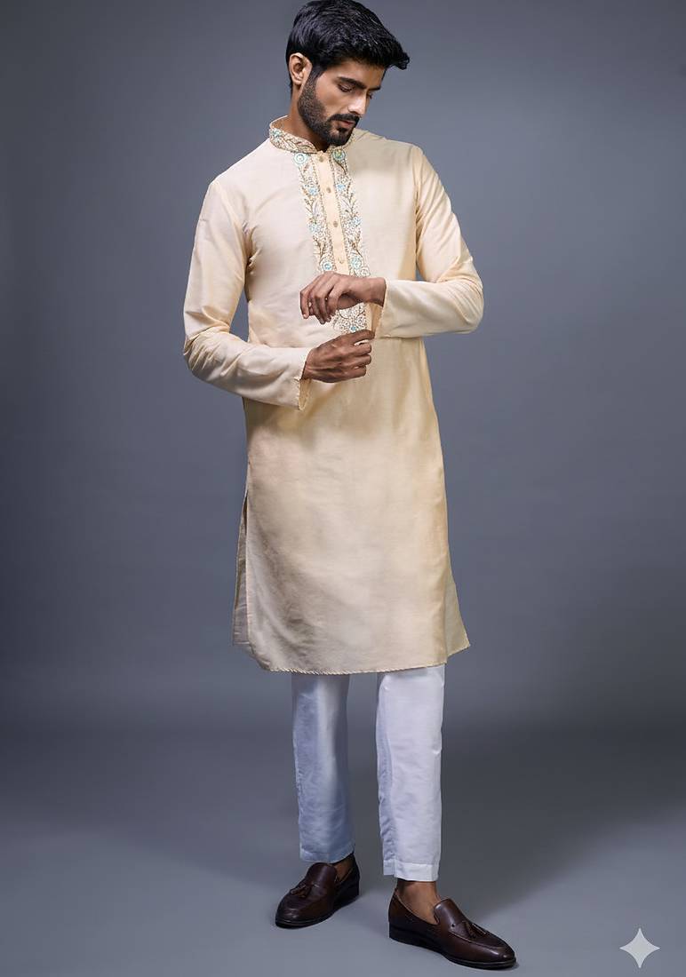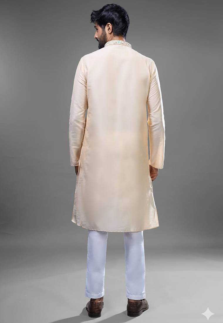 | Product Name | Cream Embroidered Silk Kurta Pant Set For Men | |