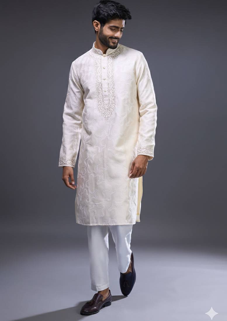 | Product Name | Classic Cream Silk Embroidered Kurta Pant Set | |